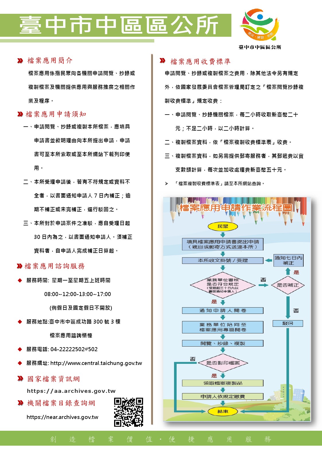 檔案是政府機關依法執行公務過程中所產生的各項紀錄,見證國家發展及傳承歷史,是瞭解國家發展的重要資料,也是政府資訊公開重要的一環。