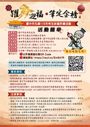 祈福海報2 活動日期:115年4月11日(星期六)。 活動時間:上午9時至11時止。 活動地點:臺中市孔廟大成殿前廣場(臺中市北區雙十路二段30號)。 參加對象:各級學校應屆升學考生及各界職場考生。 報名日期:自115年3月19日中午12時起至3月31日下午5時止(額滿截止)。 報名方式:受理名額計600名,一律採線上報名方式,以手機掃描QRcode或連結網址https://forms.gle/Ye7Snj61ajnopLBC6(詳如報名簡章)。