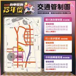 臺中市政府舉辦「2026台中最強跨年夜」晚會將於12月31日晚間6時,在水湳中央公園盛大登場。